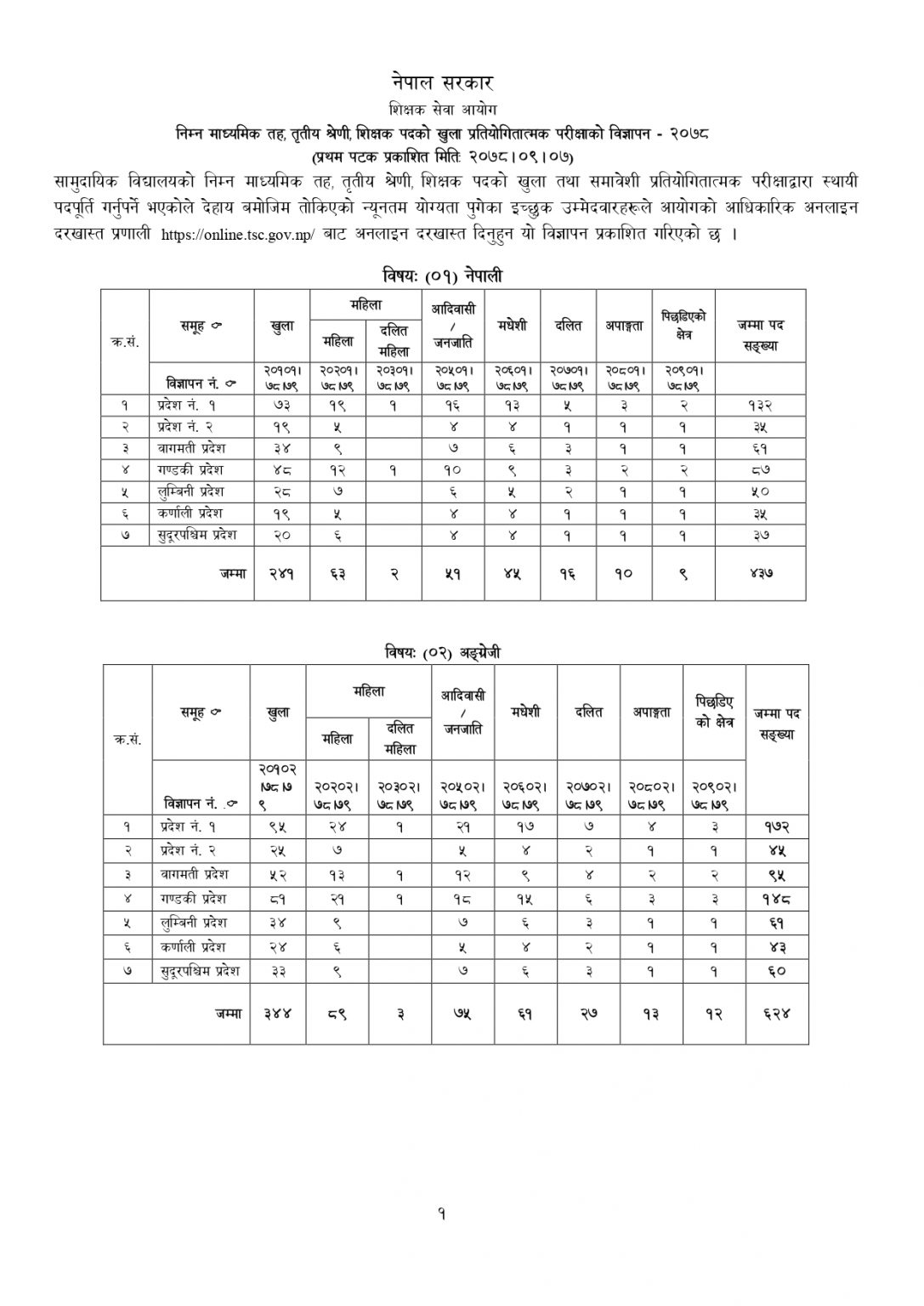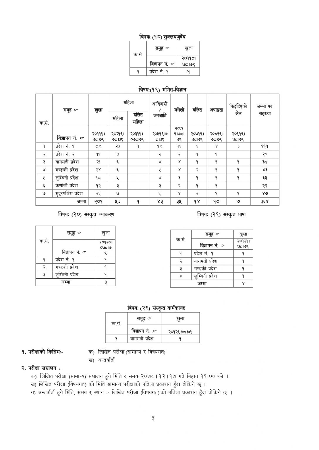 काठमाडौँ । शिक्षक सेवा आयोगले निम्न माध्यमिक तह, तृतीय श्रेणीका लागि शिक्षकको विज्ञापन खुलाएको छ । २,५९८ जना शिक्षकका लागि आयोगले विज्ञापन खुलाएको हो ।