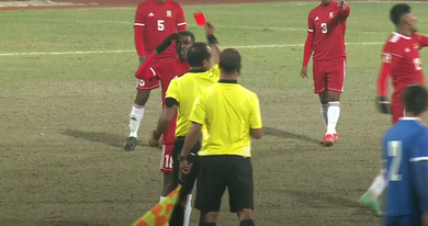 तनाब बढेपछि रेफ्रिले दुबै टिमका एक एक जना खेलाडीलाई रातो कार्ड दिए । नेपालका पुजन उपरकोटी र मरिससका फूलचन्दले राताे कार्ड पाएका छन्। यस्तै नेपाली टिमका गोलकिपर प्रशिक्षक विकाश मल्ललाई पनि रातो कार्ड दिइएको छ । तनाबका कारण केहीबेर खेल स्थगित गरिएको थियो ।