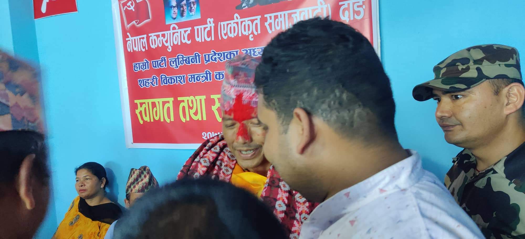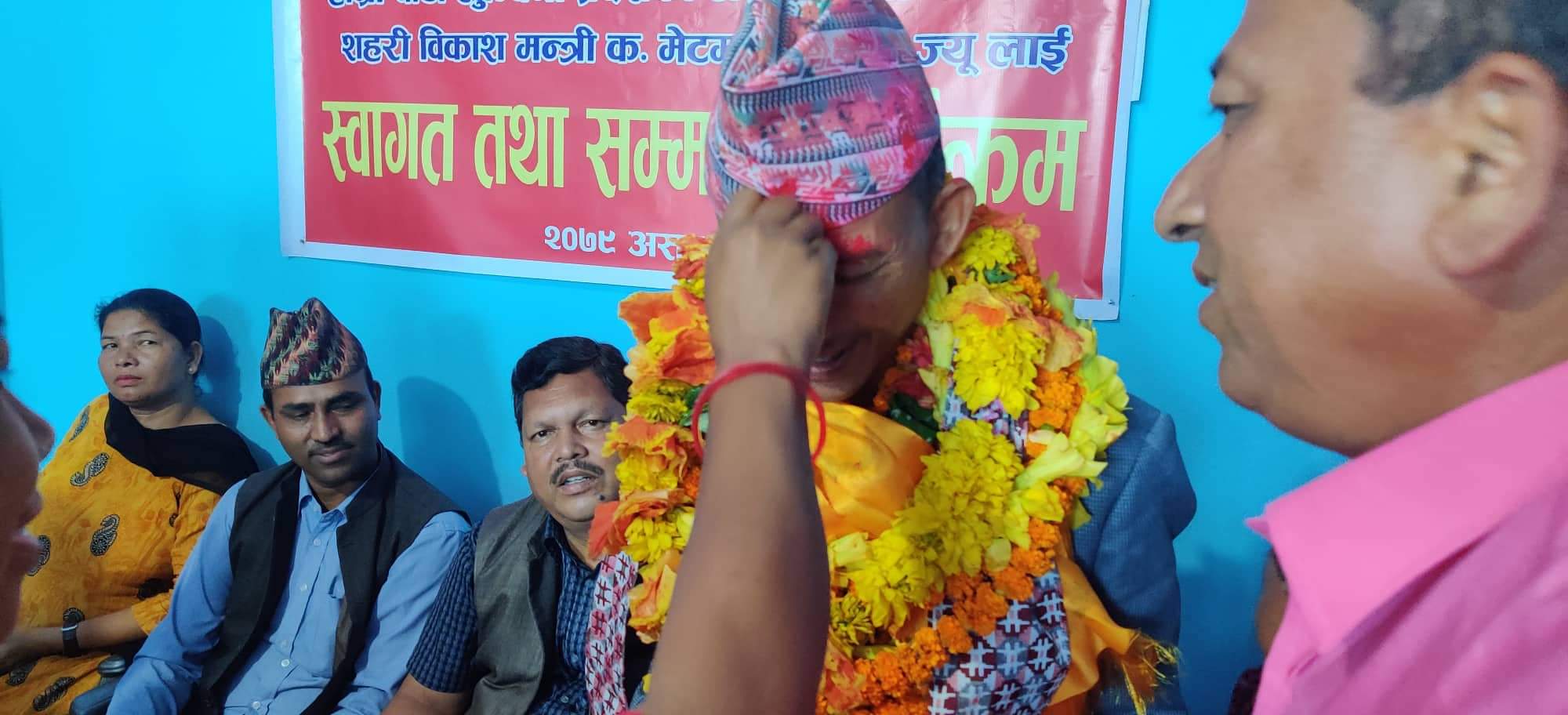 नेकपा समाजवादी पार्टी जिल्ला कमिटी दाङ्गले आज एक कार्यक्रमको आयोजना गर्दै नवनियुक्त शहरी विकास मन्त्री मेटमणी चौधरीलाई स्वागत तथा सम्मान गरेको छ। जिल्ल पार्टी कार्यालयमा भएको एक कार्यक्रमका विच उनलाई स्वागत तथा सम्मान गरिएको हो। मन्त्री नियुक्त भएपछी पहिलोपटक जिल्ला आएका चौधरीलाई निर्वाचन क्षेत्रका जनताले पनि भव्य सम्मान र स्वागत गरेको बताइएको छ। हिजो सांझ दाङ पुगेका मन्त्री चौधरीलाई भेट्न सांझ सम्म जनताहरु तथा स्थानीय नेता तथा कार्यकर्ताको भिड लागेको थियो। उनी नेकपा समाजवादी लुम्बिनी प्रदेश कमिटि अध्यक्ष समेत हुन। उनी पार्टी भित्र स्पष्टवक्ता नेताको रुपमा चिनिन्छन।