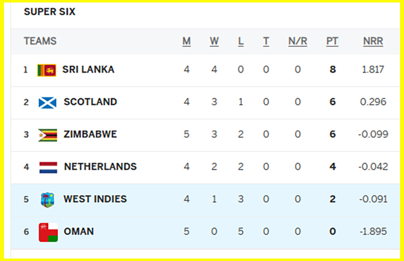 त्यस्तै नेदरल्याण्डसले सुपर सिक्समा श्रीलंकासँग हार बेहोरेको थियो भने ओमानलाई पराजित गरेको थियो ।