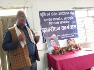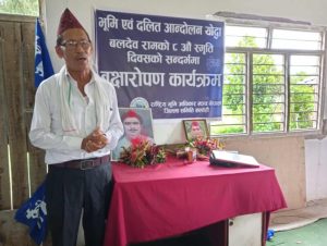 भूमि तथा दलित आन्दोलनका अग्रणी नेता बलदेव रामको ८औं स्मृति दिवसको अवसरमा सर्लाहीमा विशेष वृक्षारोपण कार्यक्रम सम्पन्न गरिएको छ।
