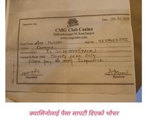 त्यस्तै क्यासिनोमा पुजारीको काम गर्दै आएका भोजराज भट्ट(पुजारी बाजे)ले ३४ लाख रुपैयाँ फिर्ता नपाएको दाबी गरेका छन्। ‘क्यासिनोले बेला–बेला रकम सापटी लिने र समयमै फिर्ता गर्ने गथ्र्यो।’ “त्यही विश्वासका आधारमा तीन पटकमा गरि ३४ लाख रुपैयाँ सापटी दिएको हुँ,” उनले बताए ।