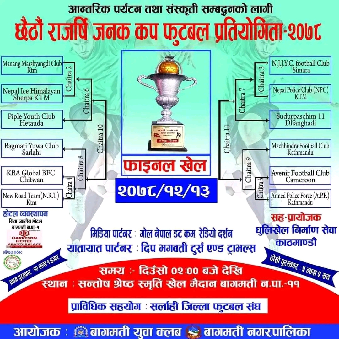 एस.पी.गाैरब,सर्लाही सर्लाहीको बागमतीमा जारी छैठौँ राजर्षि जनक कप फुटबल थप यता
