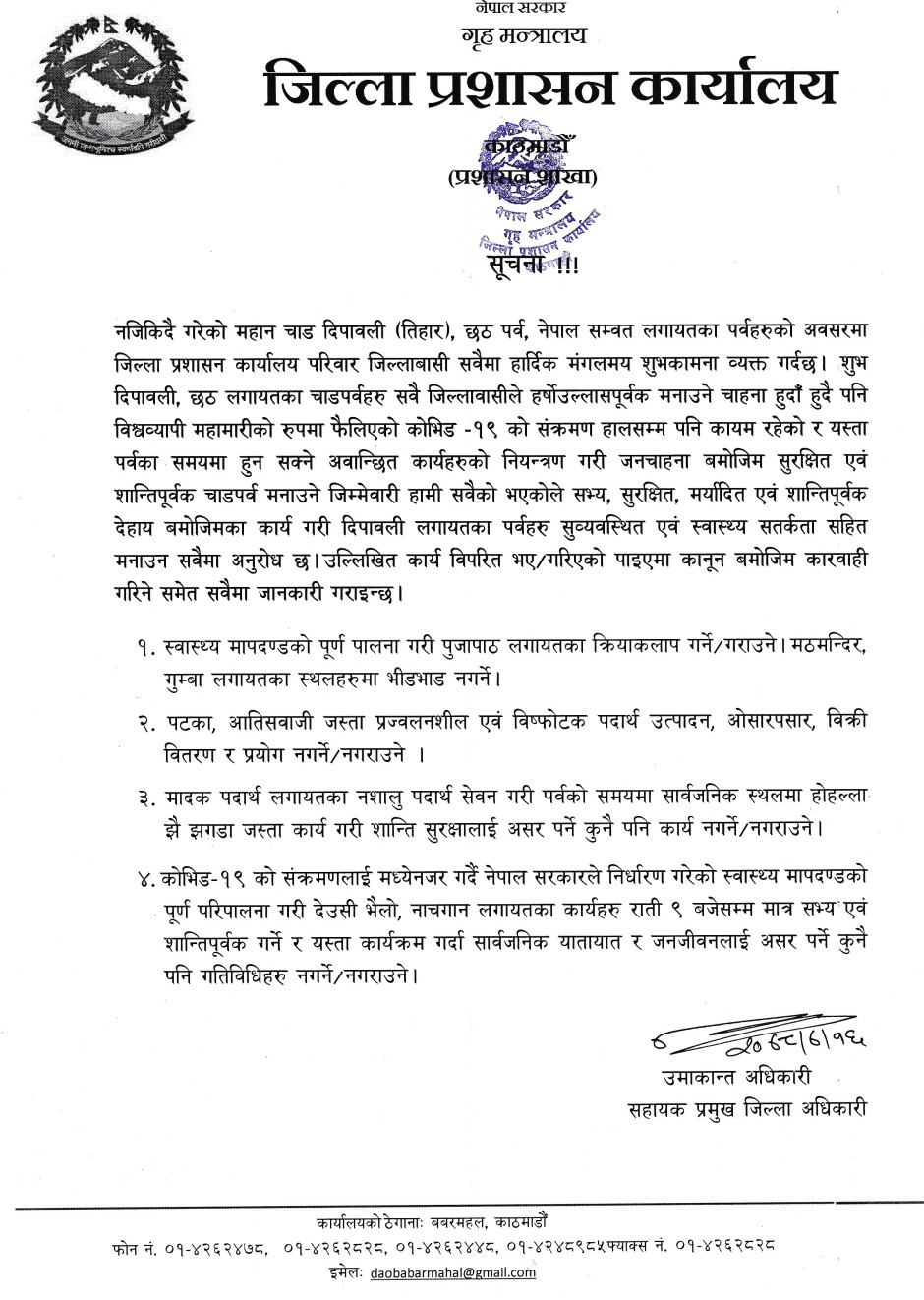 काठमाडौं उपत्यकाकामा राति ९ बजेपछि देउसी भैलो खेल्न रोक लगाइएको छ।जिल्ला थप यता