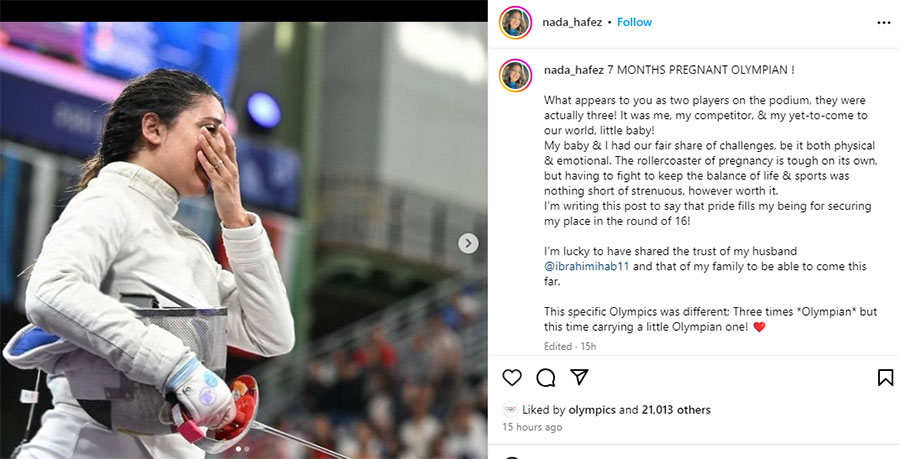 काठमाडौं । इजिप्टियन फेन्सर नाडा हाफिजले आफूले ७ महिनाको गर्भवती अवस्थामा थप यता